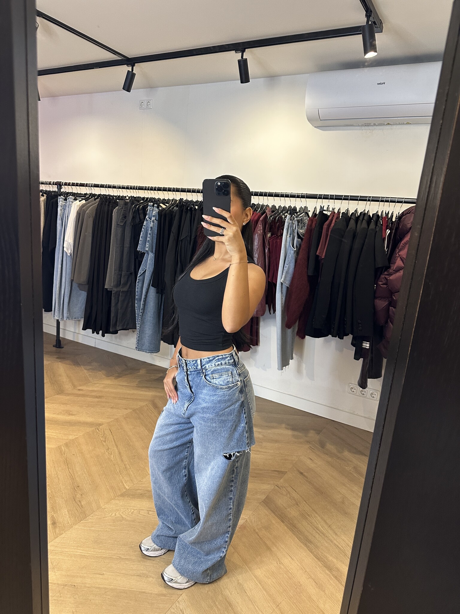 CUT OUT JEANS STRAIGHT LEG