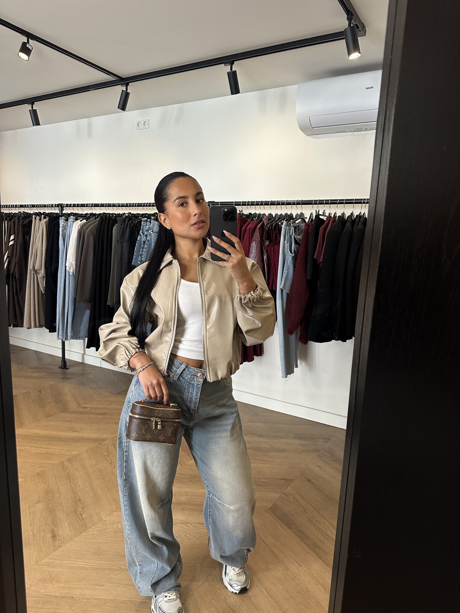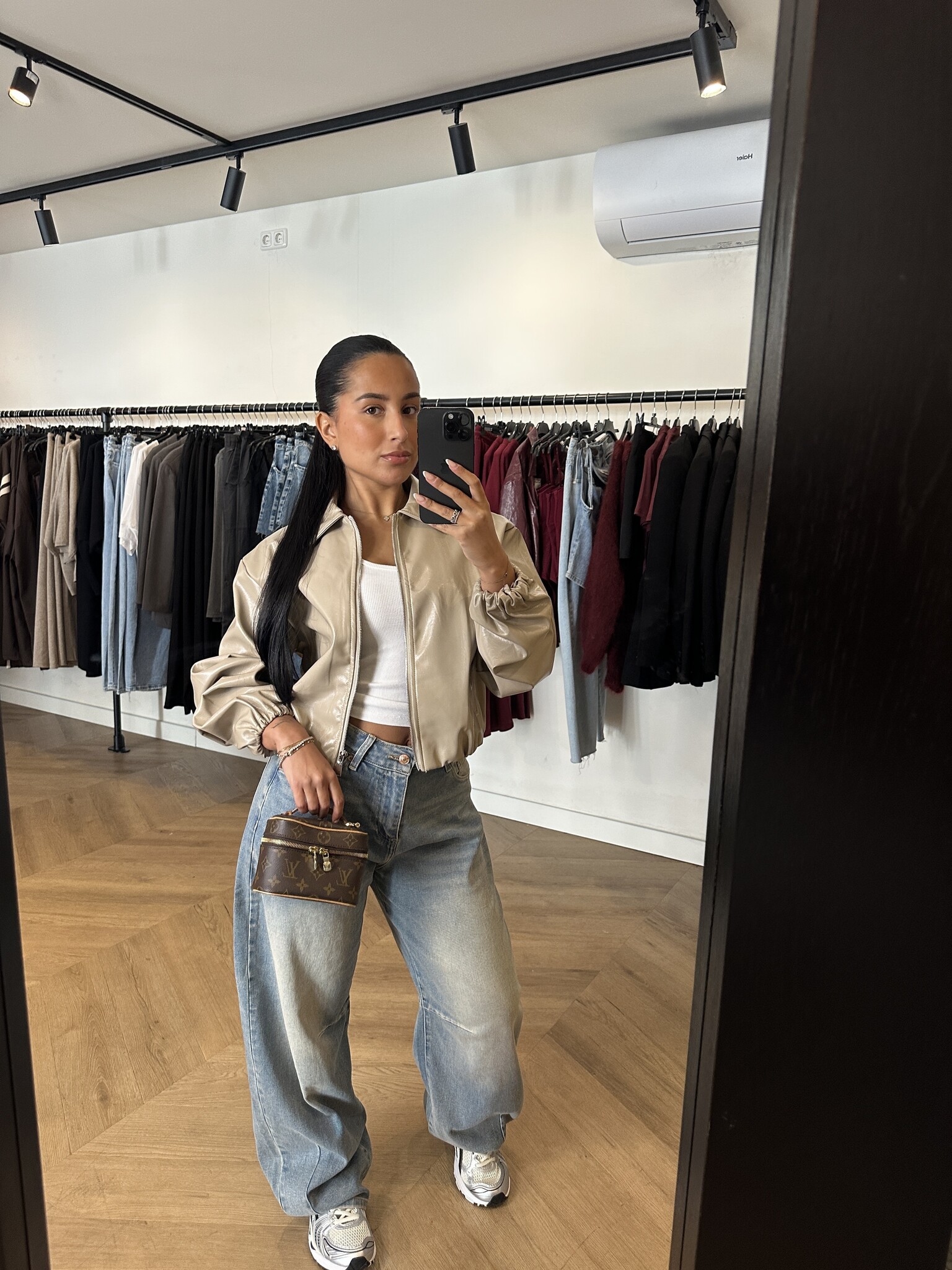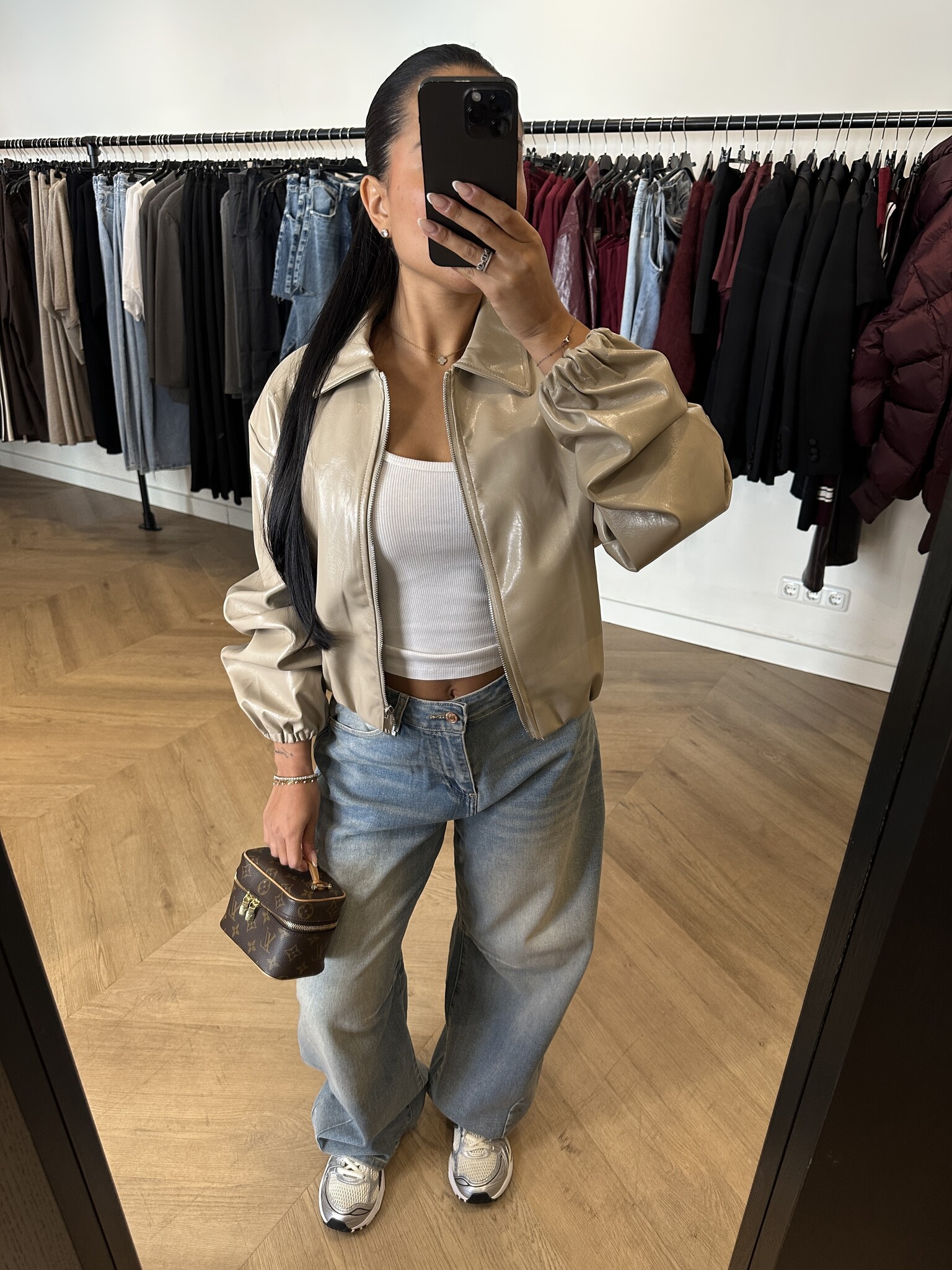 Pasvorm: Deze Beige Leather Bomber is een echte eyecatcher en perfect te combineren met de isa stretch barrel jeans voor een complete look. Het jasje is one size en past van XS t/m L. Deze bomber is een echte bestseller en wordt vaak snel bijgevuld vanwege de populariteit.