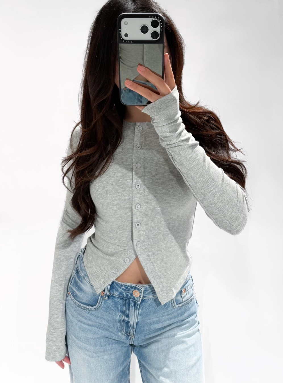 BUTTON TOP GRIJS