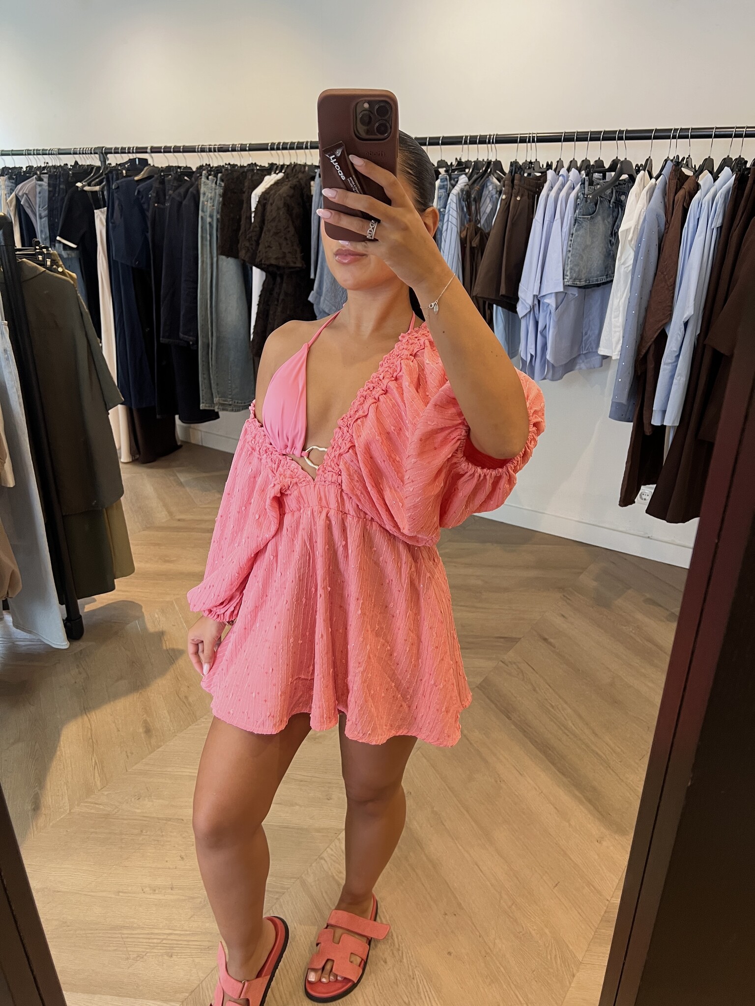 Omschrijving: De jumpsuit heeft een klein glittertje. Er zit veel stretch in en hij is te combineren met de 'MOLLY' bikini, in exact dezelfde kleur. Door het knopje bij de borst kun je hem dus open dragen, of juist wat meer bedekt en dicht dragen.
