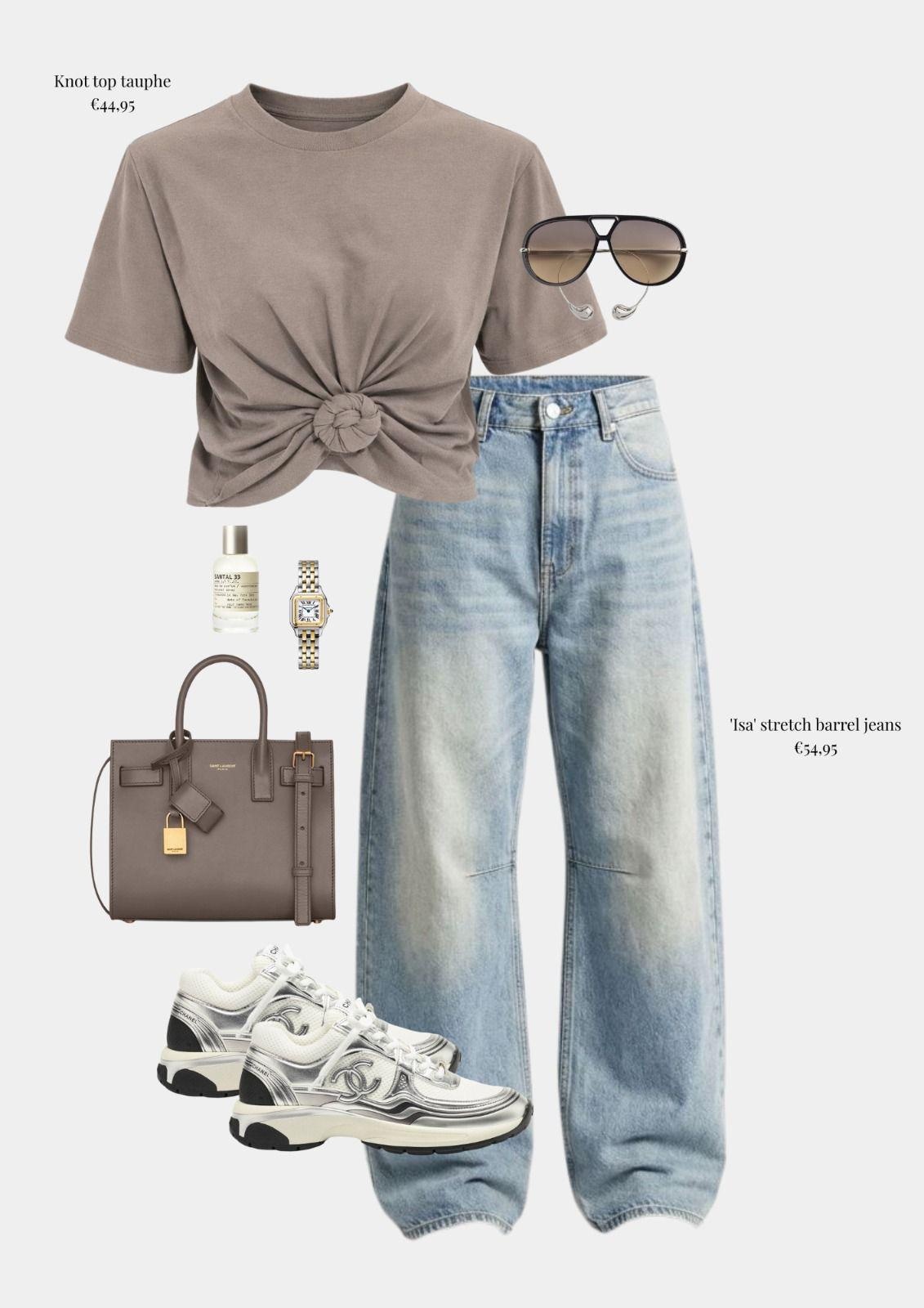 Omschrijving: Deze Knot Top in het tauphe is een comfortabele, dikke basic top met schoudervullingen voor een stoere touch. Verkrijgbaar in wit, grijs, zwart en tauphe in de maten SM of ML, waarbij hij ruim valt (Noëmy draagt SM). Perfect te combineren met de Balloon Jeans Mid Waist voor een casual en stijlvolle outfit.