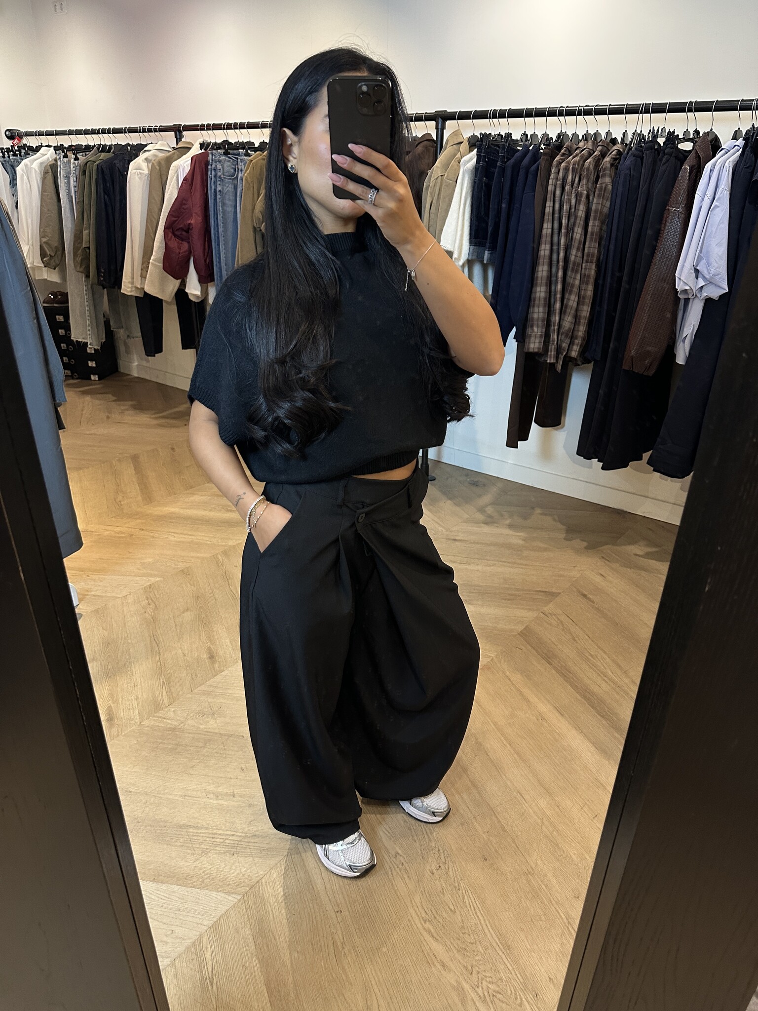 FAVE! Dit vinden wij dus echt een hele vette en het belangrijkste: comfy, fijne look. De broek valt wel kort uit, dus perfect voor de kleinere meiden, tot maximaal 1.69 te dragen. De broek is er in drie kleuren: zwart, grijs en choco. Hij heeft een stretchband aan de achterzijde en sluit dus mooi aan, zonder strak te zitten. Combineer hem met onze basic “Wendy” Tops €37,50 - deze zitten echt HEEL erg fijn en zijn goed te combineren.