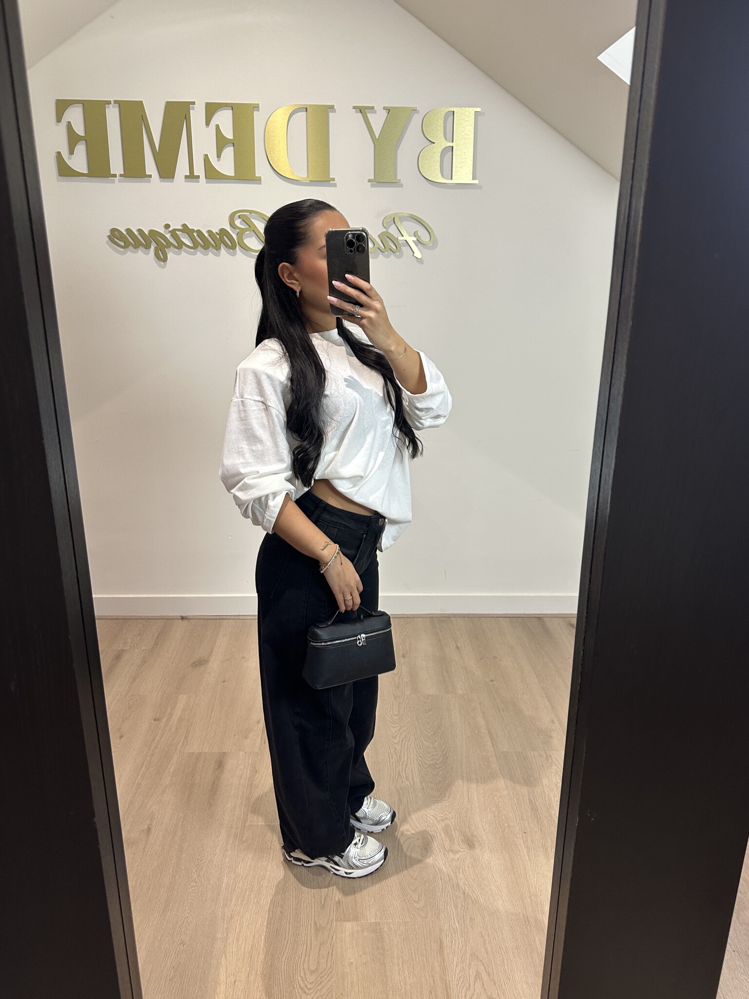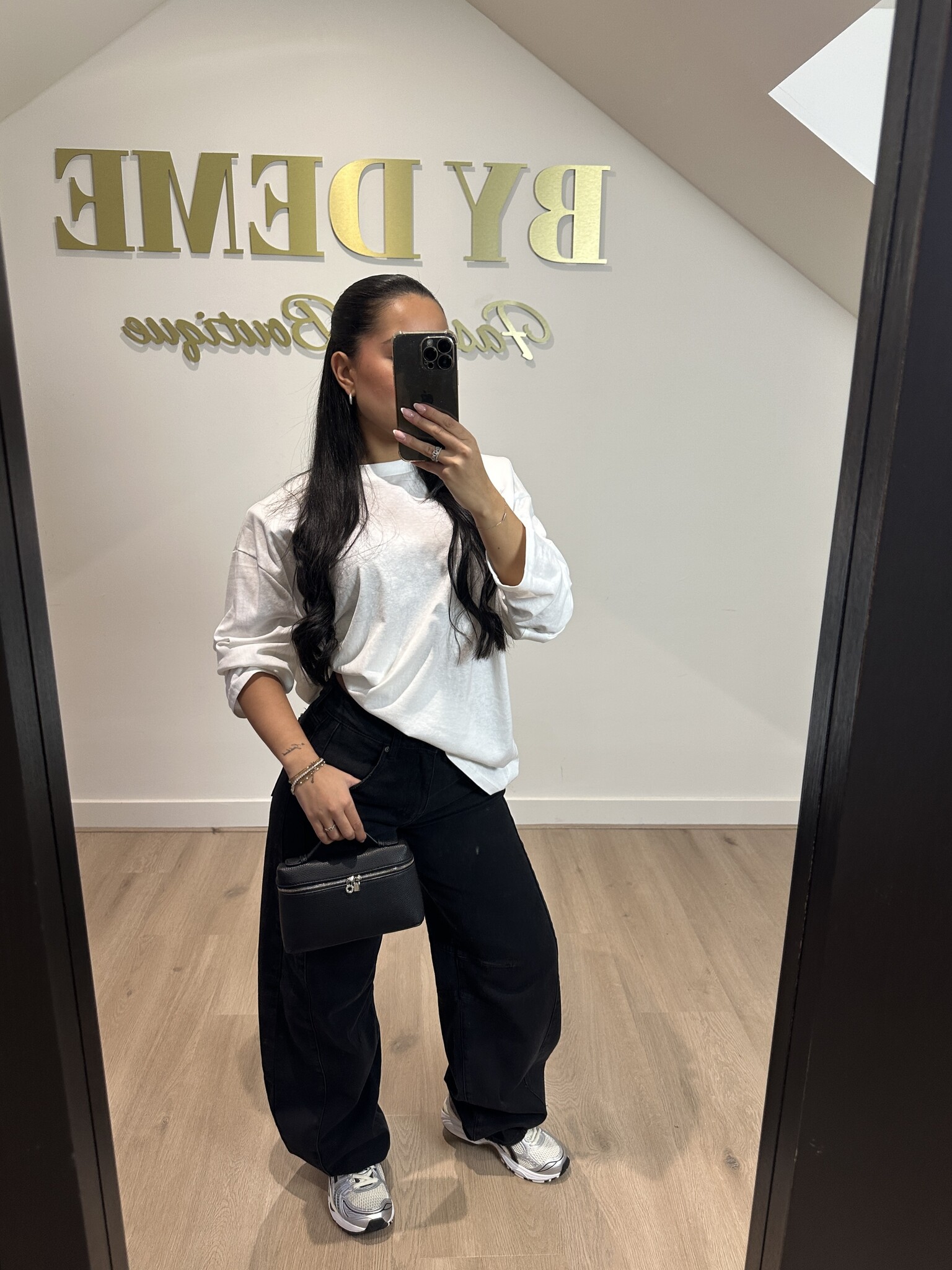 Pasvorm: Deze fijne basic tee heeft schoudervullingen (die eenvoudig te verwijderen zijn als je dat zou willen) en valt mooi oversized en lang.