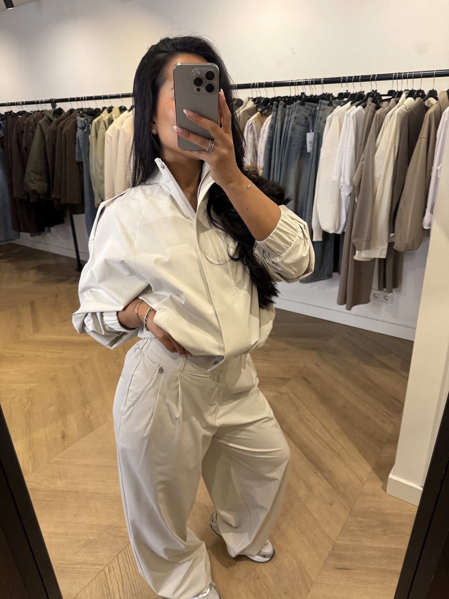 TECHNICAL WIDE LEG PANTS BEIGE (deel van set)