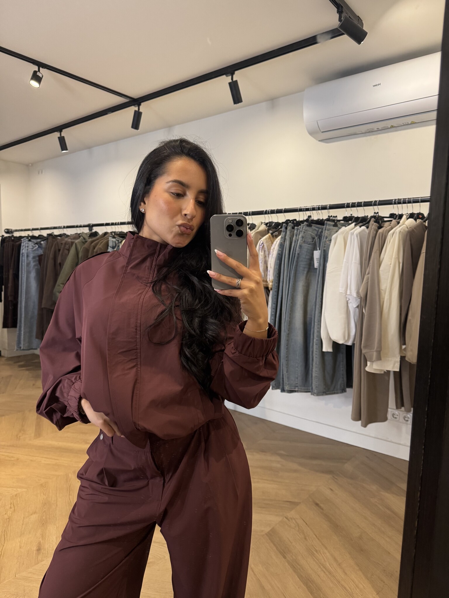 TECHNICAL WIDE LEG PANTS BORDEAUX (deel van set)