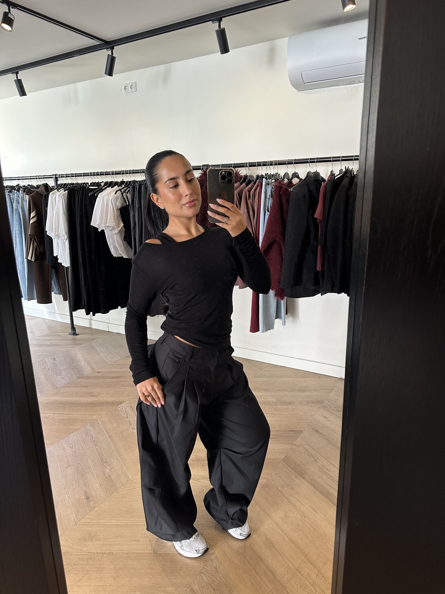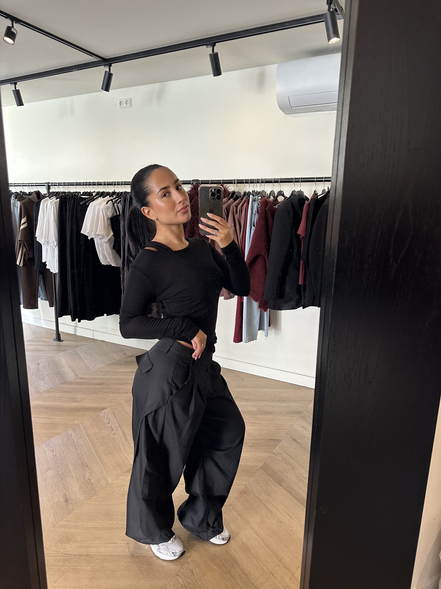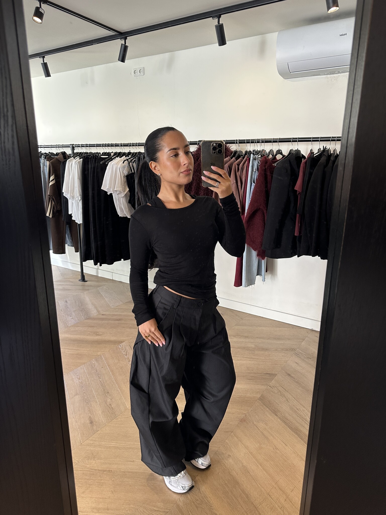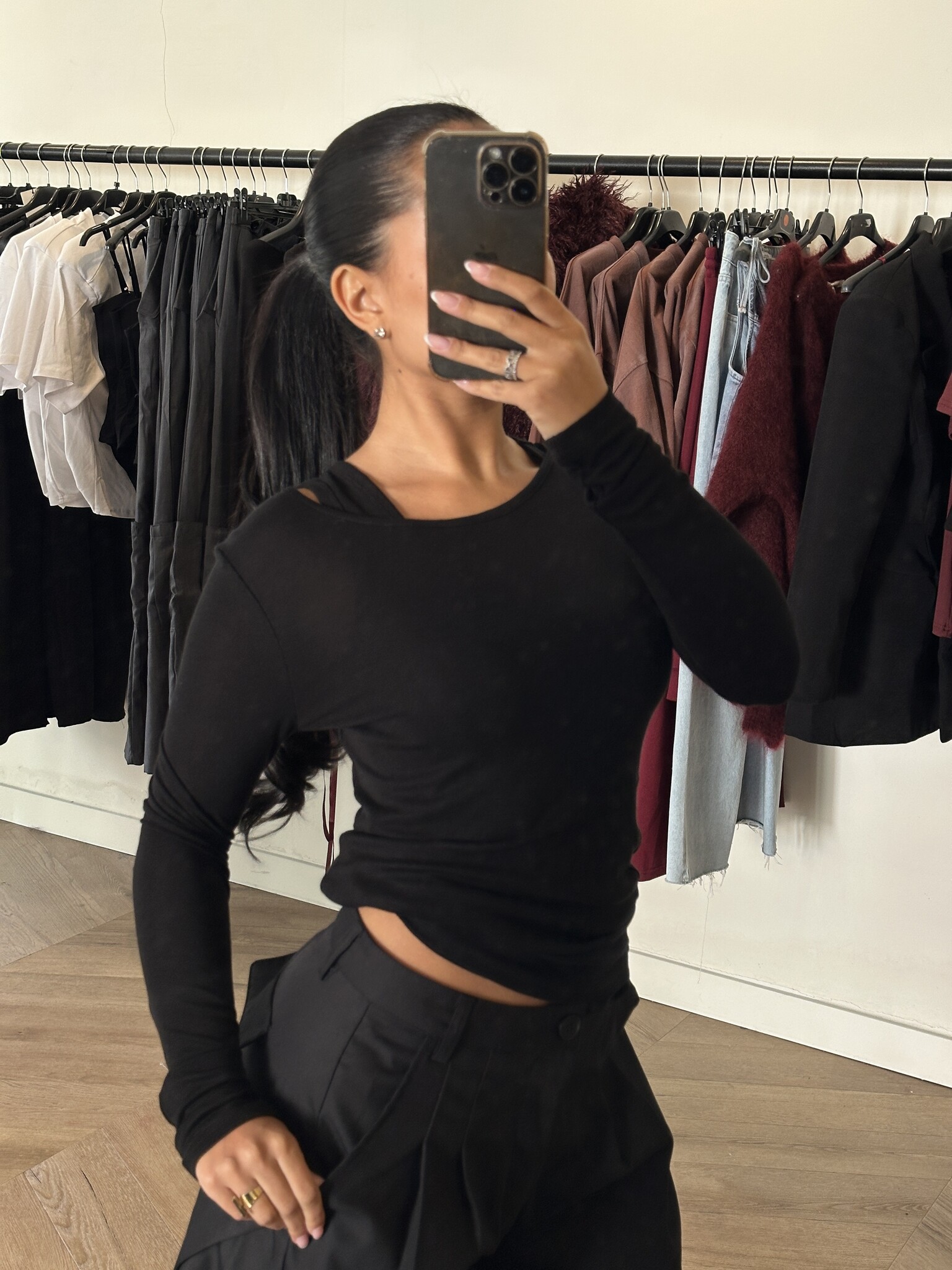 Omschrijving: Deze zwarte 2 Ways top bestaat uit een lange mouwen shirt met een hemdje, waardoor je hem op twee manieren kunt dragen. Tijdloos, stijlvol en makkelijk te combineren.
