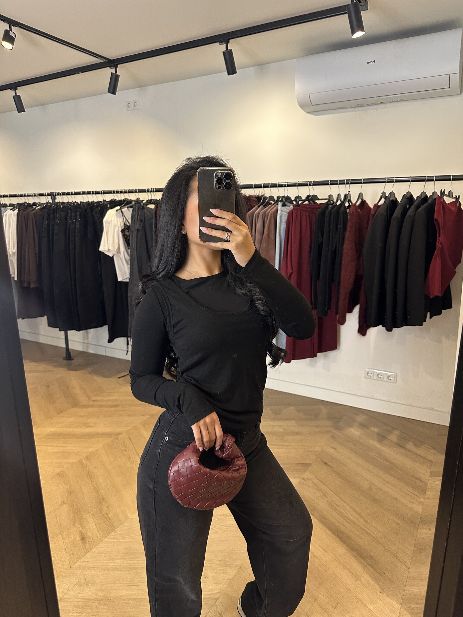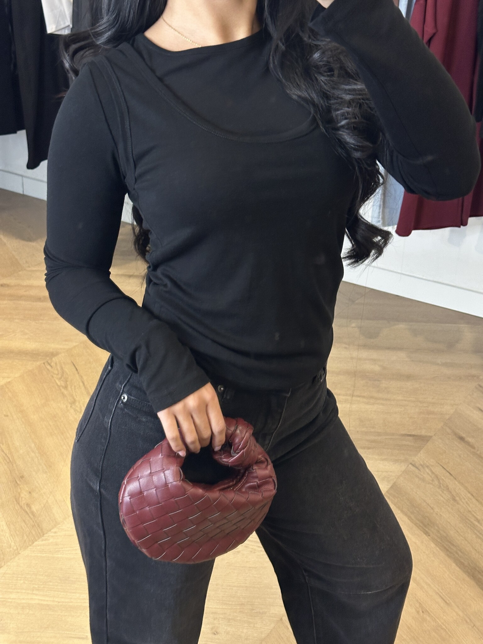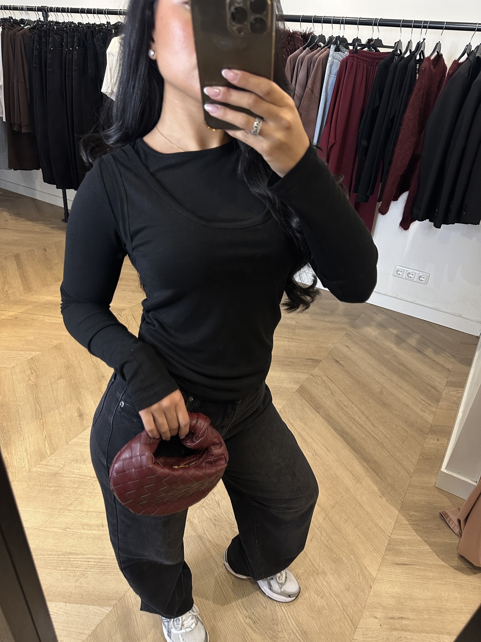 Omschrijving: Deze zwarte 2 Ways top bestaat uit een lange mouwen shirt met een hemdje, waardoor je hem op twee manieren kunt dragen. Tijdloos, stijlvol en makkelijk te combineren.