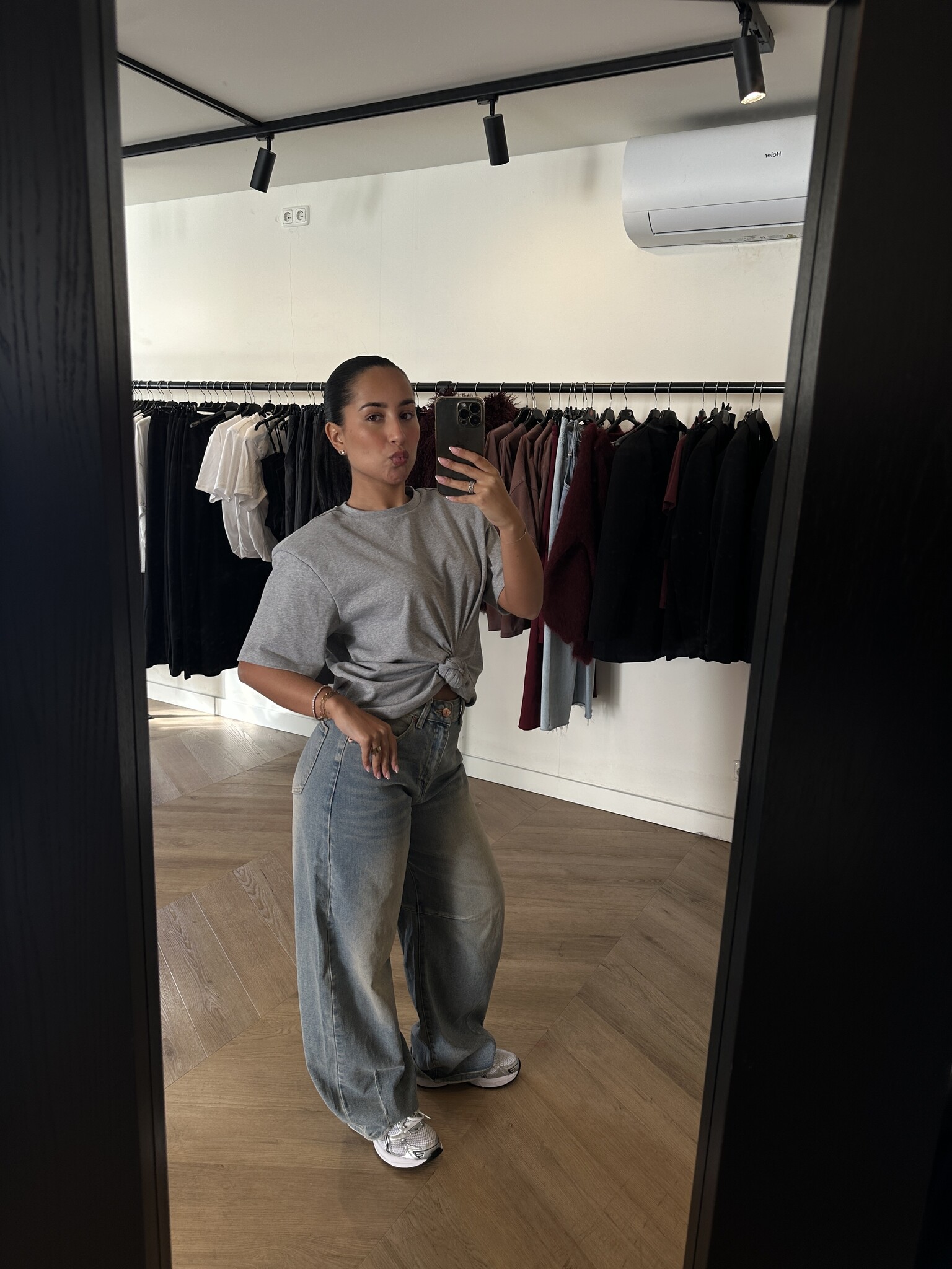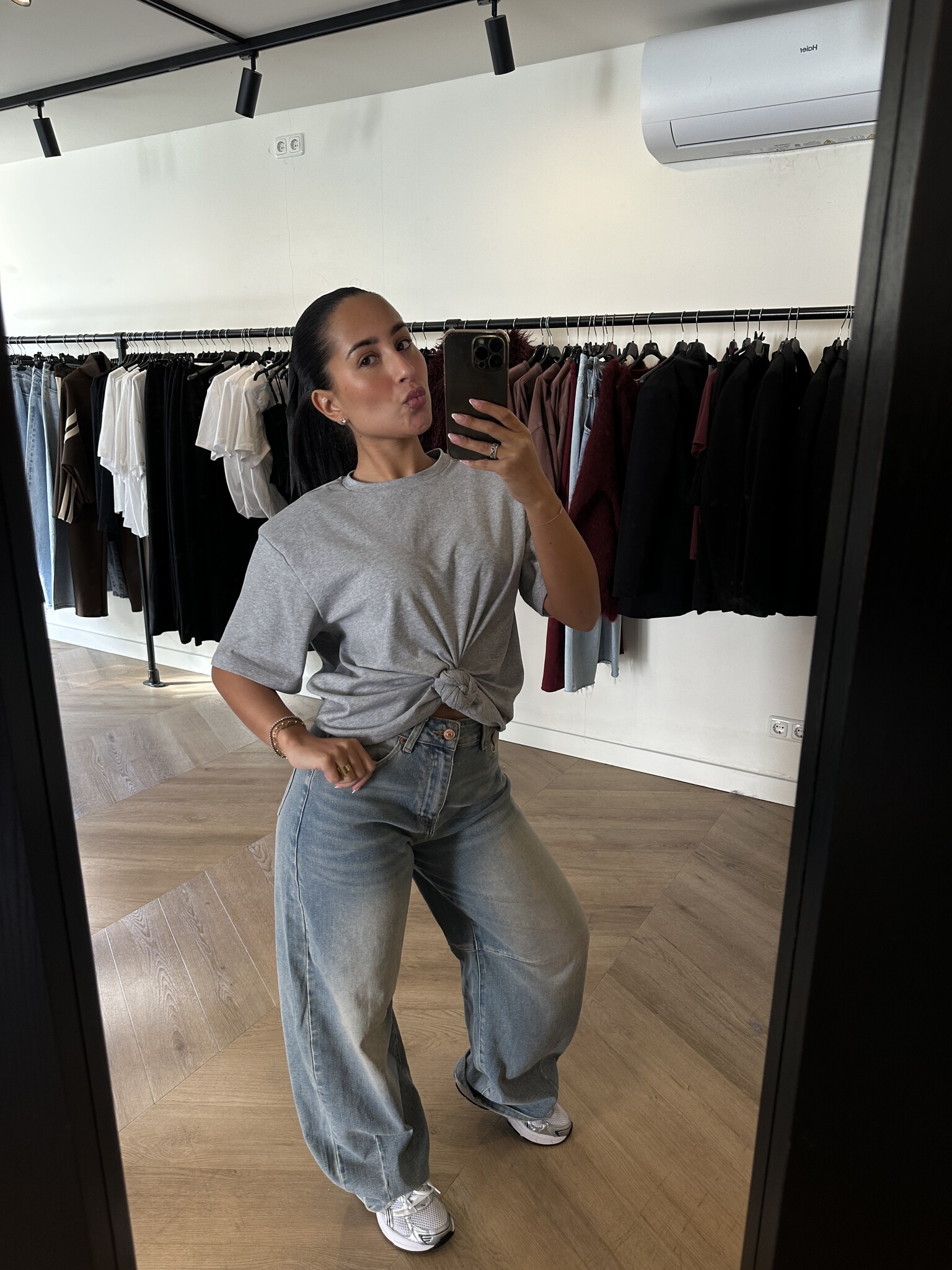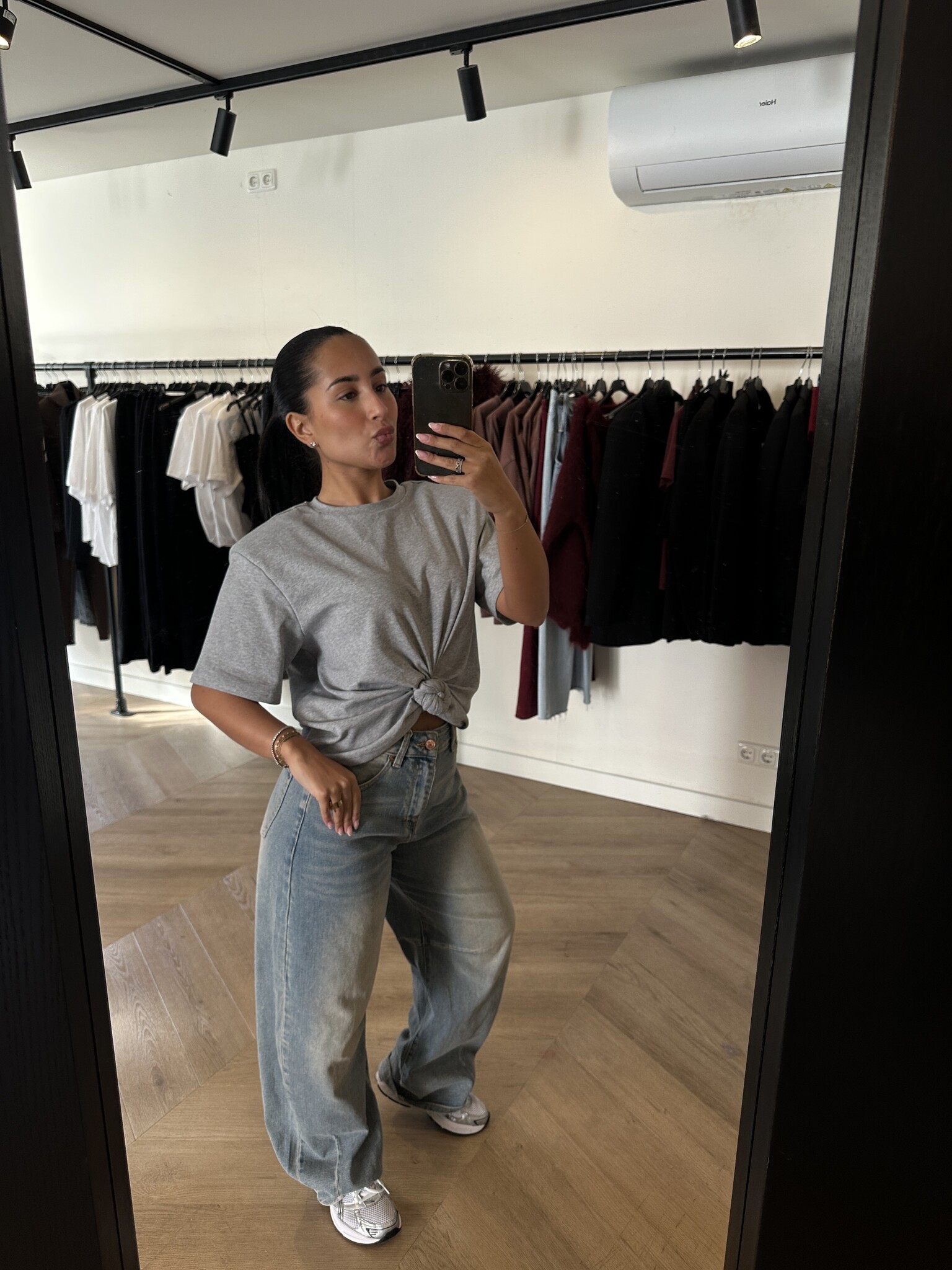 Omschrijving: Deze Knot Top in het grijs is een comfortabele, dikke basic top met schoudervullingen voor een stoere touch. Verkrijgbaar in wit, grijs en zwart en in de maten SM of ML, waarbij hij ruim valt (Noëmy draagt SM). Perfect te combineren met de Cargo Balloon Pantalon voor een casual en stijlvolle outfit.